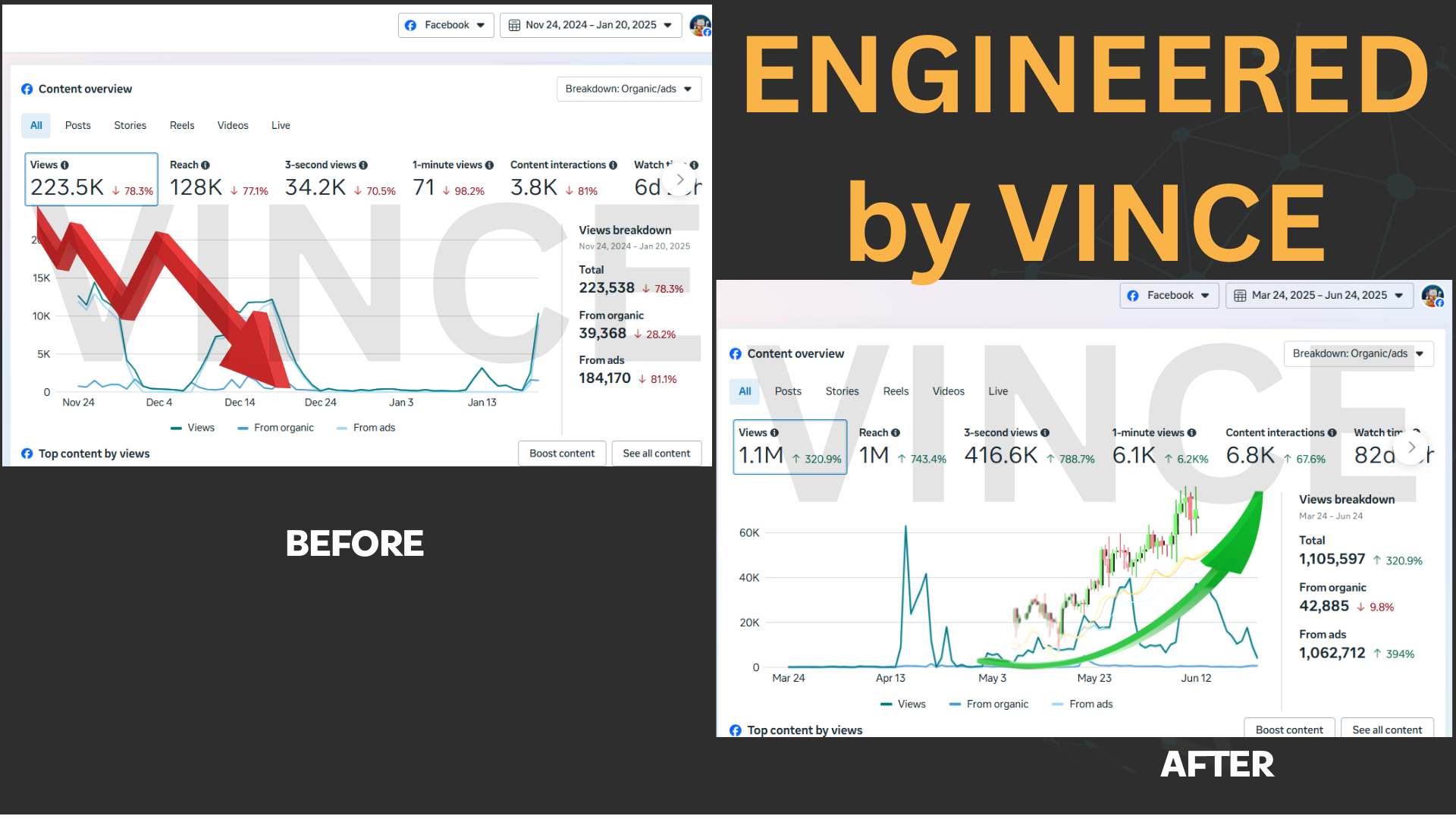 223K views → 1.1M views