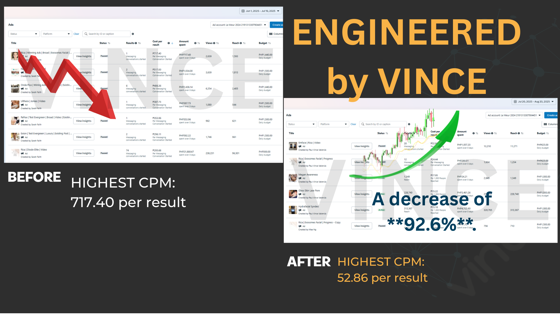 Cost per result reduced 92.6%